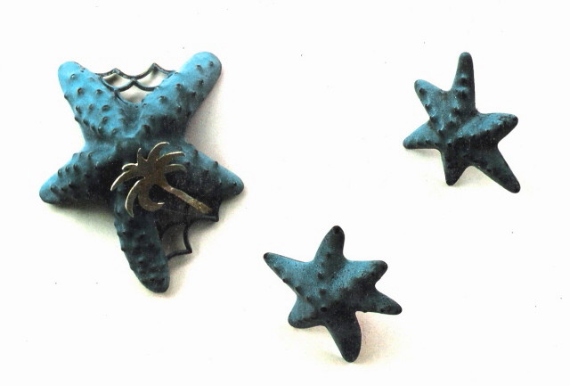 ‘Star Islands’ Brooch and earrings, copper with patina and silver